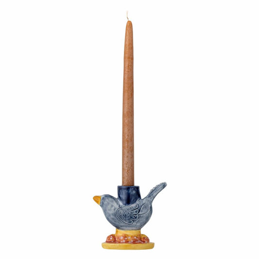Svečnik Trudy - ročno poslikan moder keramični svečnik z motivom ptice
